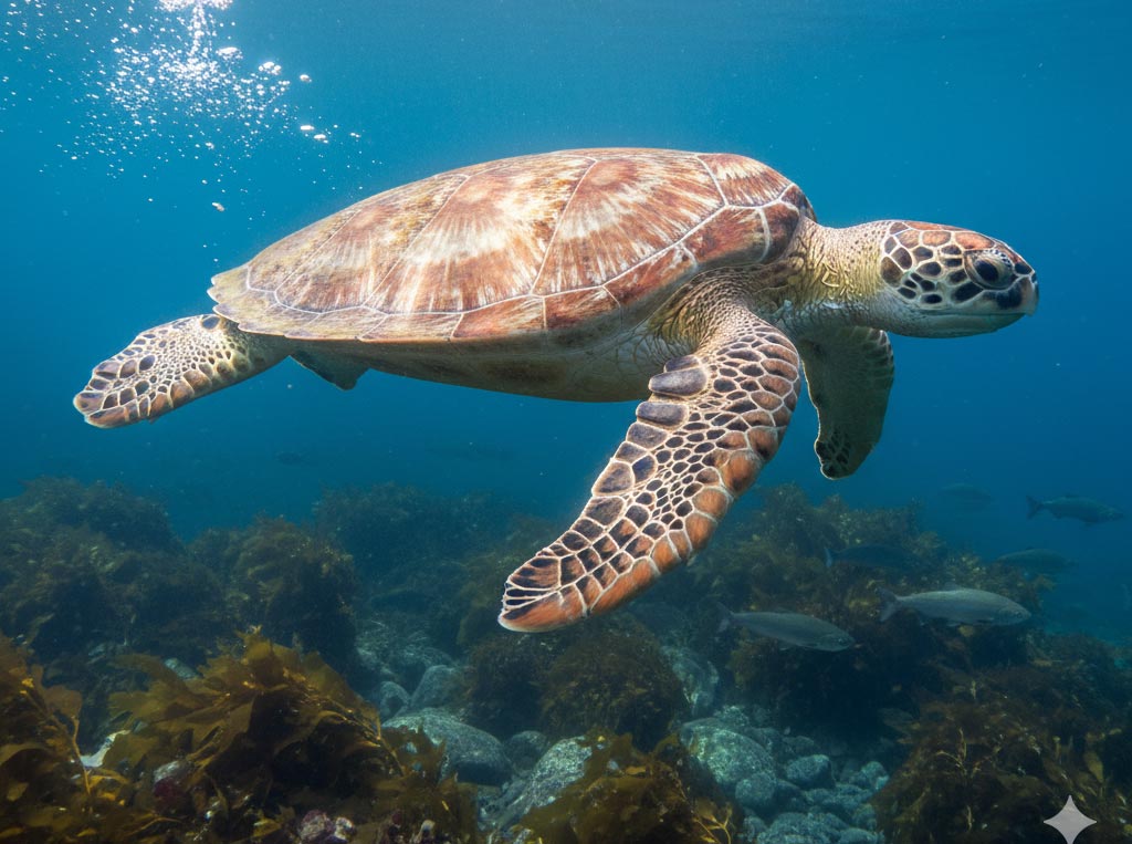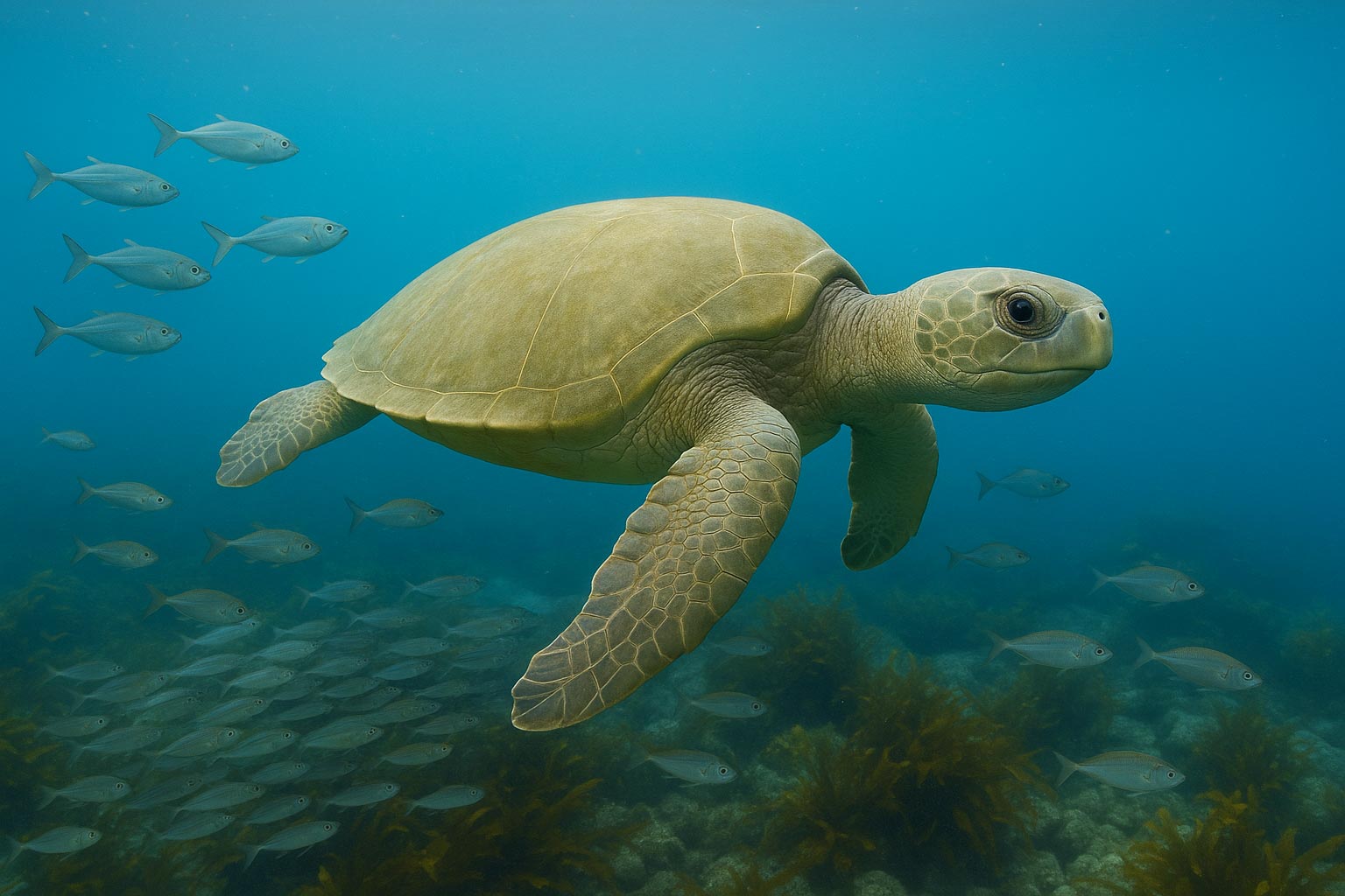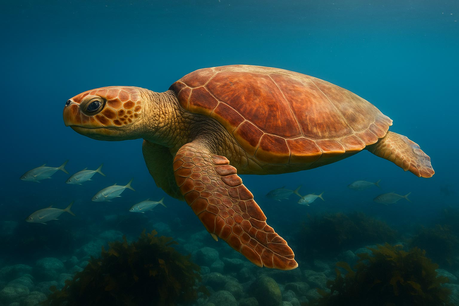 Loggerheads occasionally drift into Alaska’s southern waters, their reddish-brown shells and massive jaws built for crushing crabs, clams, and other hard-shelled prey. They nest in subtropical and temperate zones, with females returning to the same beaches where they hatched.